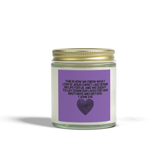 1 John 3:16 Scented Coconut Apricot Candles (4oz, 9oz)